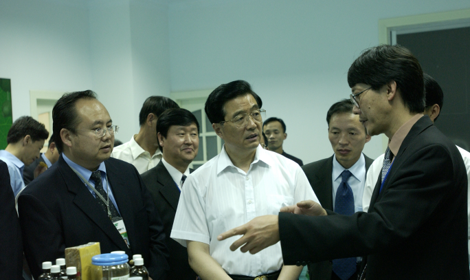 在大學科技園入園企業(yè)昆明云大生物技術有限公司,胡主席對云大生物從事的單克隆抗體項目很感興趣,不時詢問單克隆抗體的生產(chǎn)情況、試制產(chǎn)品的性能和有效情況以及項目產(chǎn)品的經(jīng)濟效益和產(chǎn)品的市場前景。技術發(fā)明人、公司技術總監(jiān)馬嵐博士一一作了解答。胡主席很高興,稱贊他們?yōu)橹袊挠媱澤龂咛峁┝烁呒夹g產(chǎn)品。胡主席說:"這個項目搞得很好,產(chǎn)品應用范圍非常廣泛。"并說,現(xiàn)在生物高技術產(chǎn)業(yè)完全是一個全新的概念,在技術集成的小范圍內(nèi),就可以創(chuàng)造出極高的產(chǎn)值。